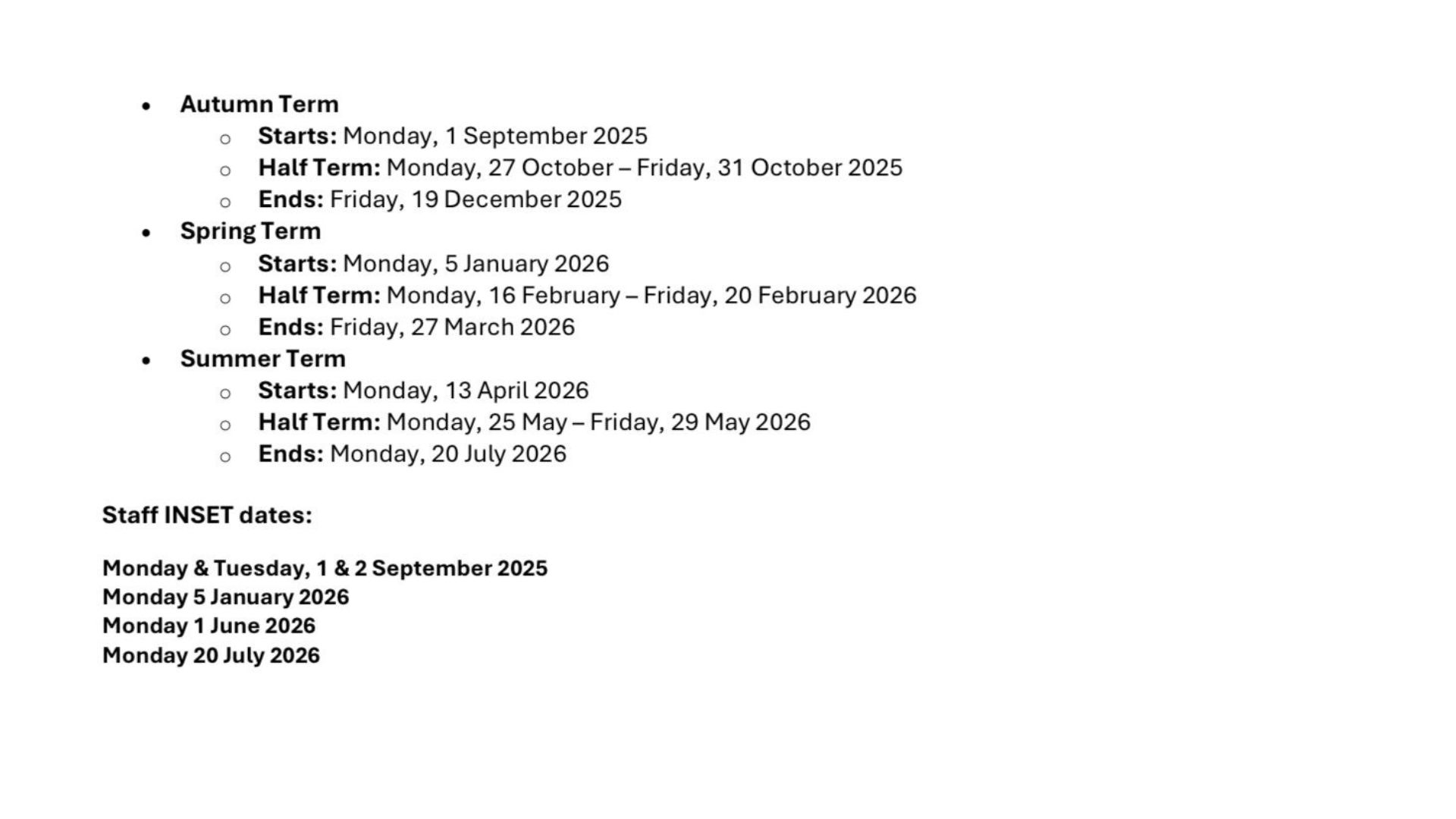Term Dates